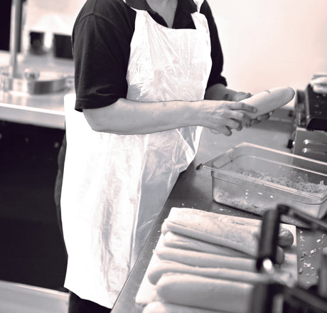 Șorț de unică folosință 69 x 107 cm din PE alb, 100 buc/pachet