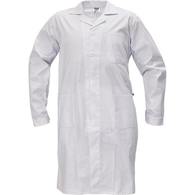 Halatul FERN cu mâneci lungi de la CERVA este o haină de lucru destinată bărbaților, confecționată din 100% bumbac cu o greutate a materialului de 190 g/m². Asigură confort și durabilitate în condiții de muncă, având lungimea până deasupra genunchilor și mâneci echipate cu mâneci cu manșete reglabile prin nasturi. Halatul dispune de o închidere clasică cu nasturi și trei buzunare exterioare pentru un plus de funcționalitate. Este conform standardului EN ISO 13688 pentru îmbrăcăminte de protecție, fiind recomandat pentru industriile alimentară, ospitalitate, chimică, sănătate și asistență socială.