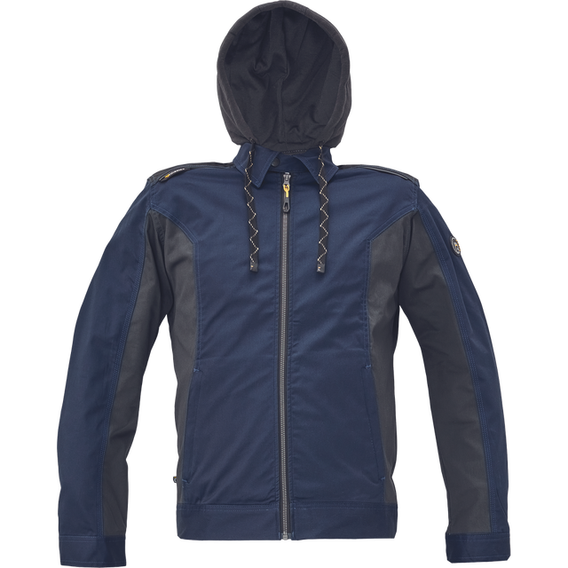 Jacheta DAYBORO bleumarin pentru bărbați este confecționată din material elastic TRIFIBETEX® (62% bumbac, 35% poliester, 3% Spandex), 260 g/m², oferind o potrivire ergonomică și confort ridicat. Are glugă detașabilă, întărituri pe umeri din poliester Oxford, două buzunare laterale și un buzunar interior pentru telefon. Dispune de detalii reflectorizante ton-pe-ton. Este potrivită pentru lucrări de construcții și inginerie, respectând standardul EN ISO 13688.