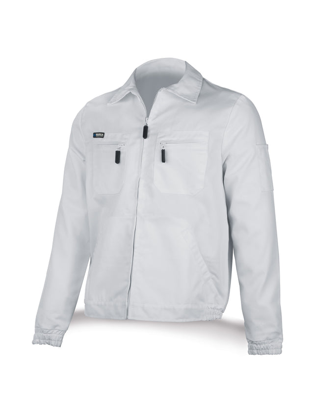 Jacheta Marcapl Top Series 488CTTOPBL este confecționată dintr-un material robust de 245g/m², amestec poliester/bumbac (65% poliester, 35% bumbac). Aceasta asigură confort, rezistență la uzură și întreținere ușoară, fiind destinată utilizării profesionale industriale și tehnice. Jacheta dispune de cinci buzunare funcționale: două buzunare aplicate pe piept, două buzunare tăiate pe marginea inferioară a jachetei și un buzunar pentru pix cu două compartimente pe braț, ideal pentru organizarea accesoriilor mici. Reglarea pe șolduri se face prin elastice laterale, ceea ce oferă o potrivire confortabilă și flexibilă.