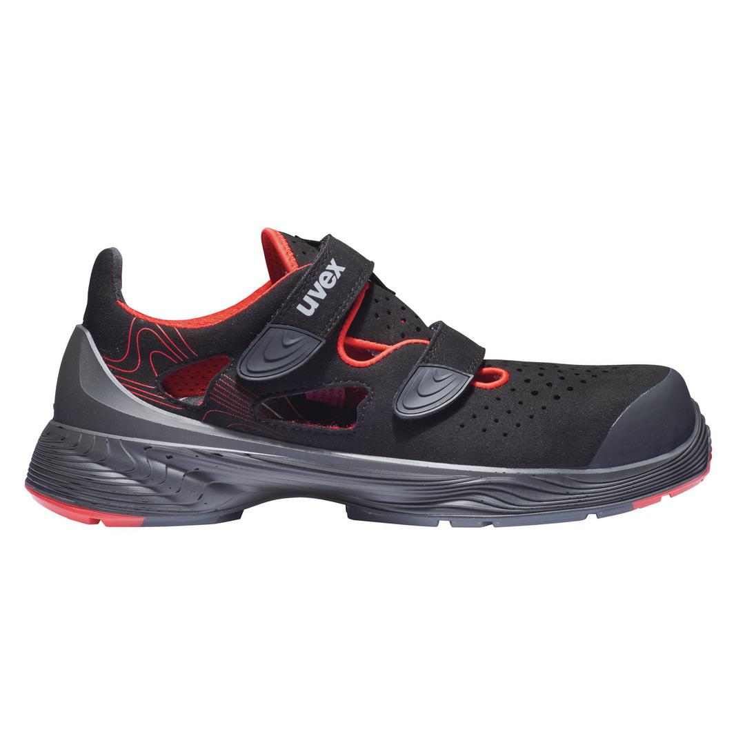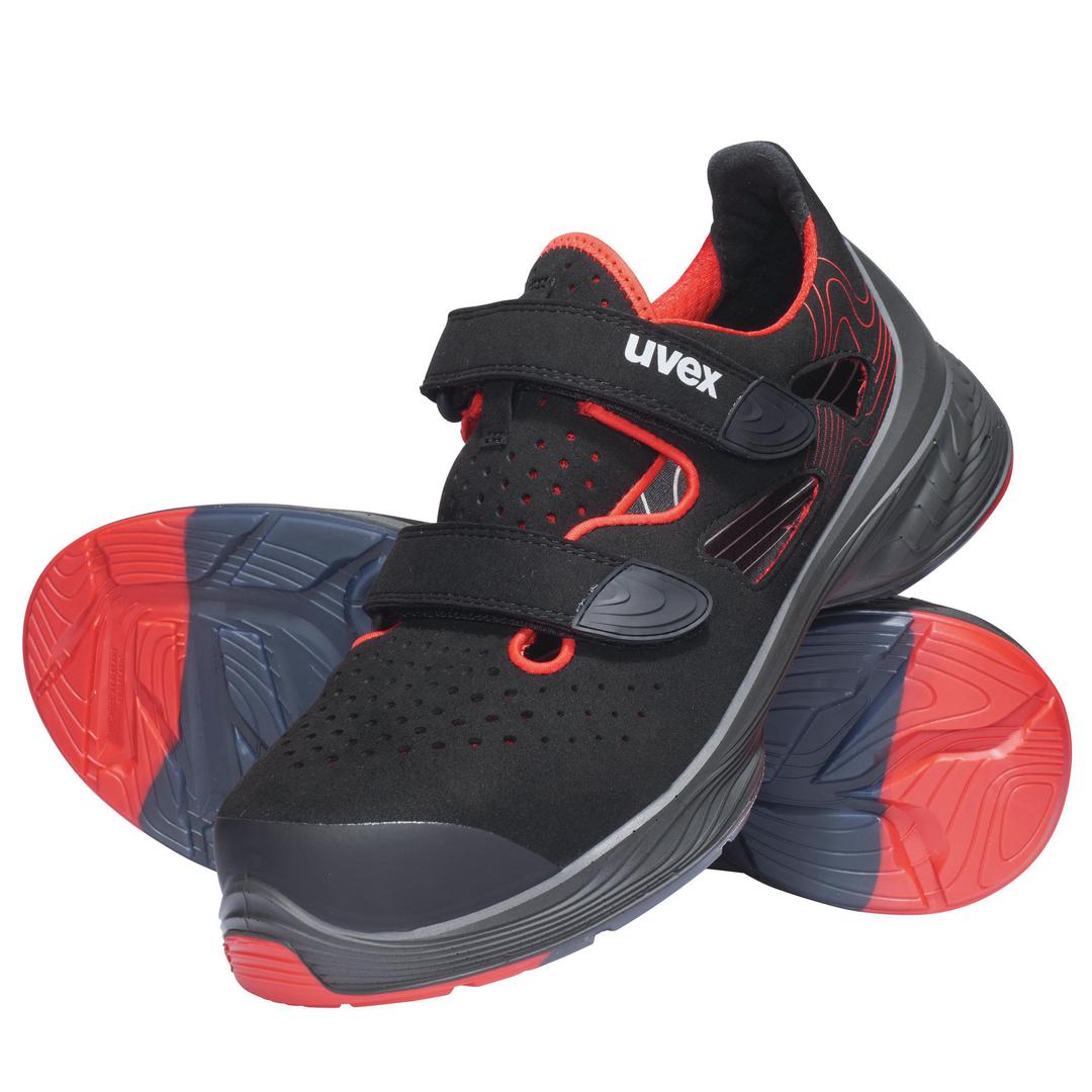 Sandalele de protecție uvex 1 G2 S1 PL, lățime 11 sunt modele foarte ușoare și ergonomice, ideale pentru aplicații ușoare. Sunt fabricate din materiale sintetice, potrivite pentru persoanele alergice la crom, fără silicon, plastifianți sau alte substanțe care pot afecta umiditatea. Au închidere dublă reglabilă cu velcro, față din microvelur perforat aproape fără cusături pentru eliminarea punctelor de presiune și branț detașabil, antistatic, cu absorbție suplimentară a șocurilor în călcâi și antepicior. Talpa inovatoare uvex i-PUREnrj oferă absorbție eficientă a șocurilor și redă energia la fiecare pas, asigurând stabilitate și confort pe întreaga zi. Bombeul este 100% metal-free, lat, anatomic și cu stabilitate laterală, iar talpa are aderență excelentă și este rezistentă la perforare. Sandalele includ protecție ESD și respectă standardul EN ISO 20345:2022 + A1:2024, categoria S1 PL.