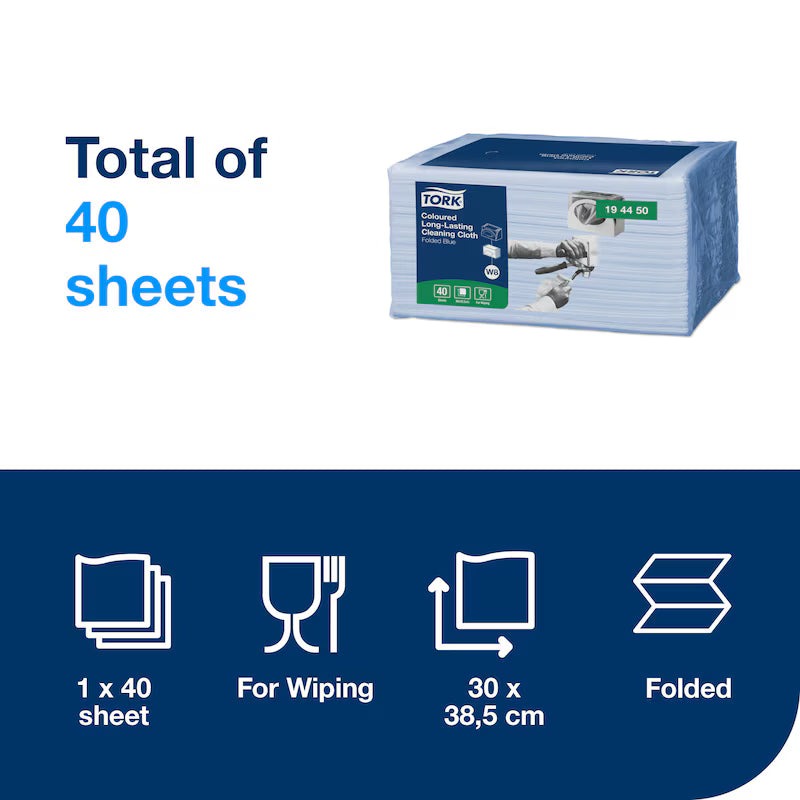 Tork 194450 este o lavetă de curățare durabilă, format W8, de culoare albastru. Construcția sa robustă oferă o excelentă rezistență la rupere și performanță pe durata mai multor utilizări. Este ideală pentru spații profesionale de alimentație, restaurante sau orice mediu care cere igienă riguroasă și eficiență la curățenie. Materialul asigură absorbție rapidă și distribuire uniformă a soluțiilor de curățare.