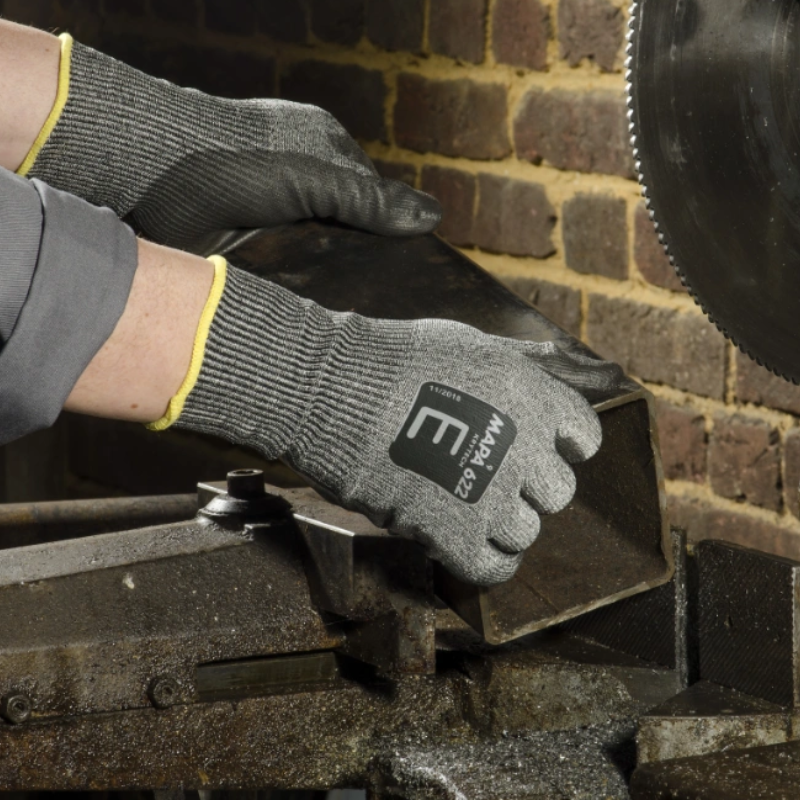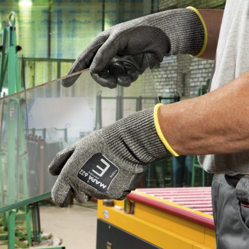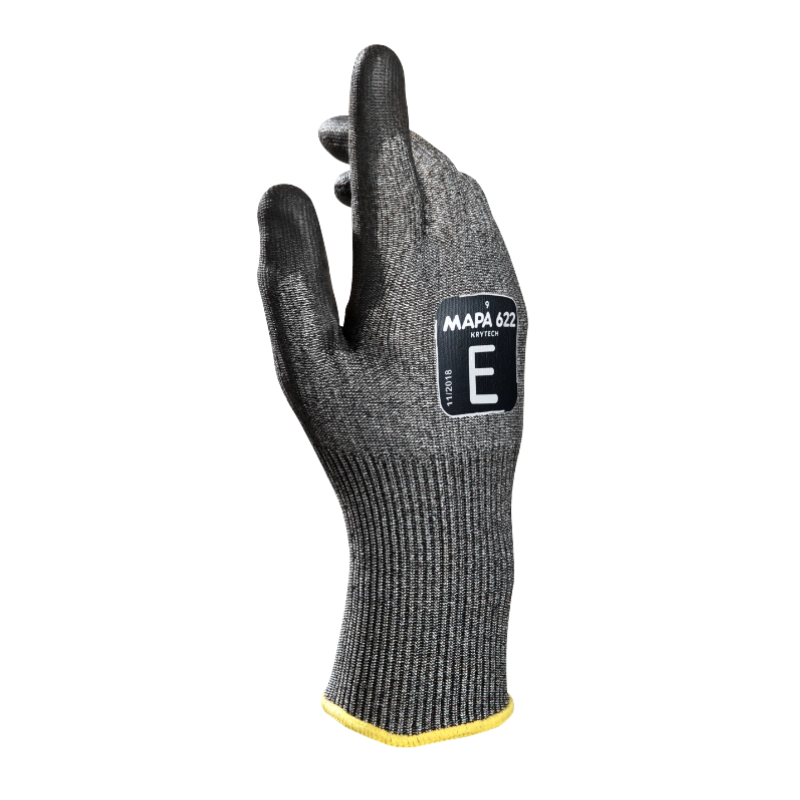 Mănuşile MAPA KryTech 622 oferă protecţie de nivel foarte înalt la tăiere (nivel E) fără compromisuri în confort sau dexteritate. Sunt realizate cu tricotaj fără cusături, palmă acoperită cu poliuretan, compatibile cu touchscreen, fără silicon (ideal în metalurgie şi industria sticlei).