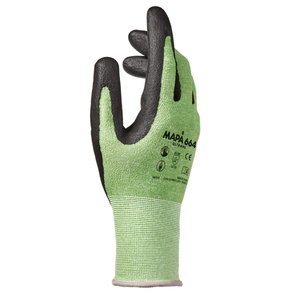 Mănușile Ultrane 664 sunt realizate cu un design ecologic, folosind fibre reciclate care asigură un echilibru optim între protecție, dexteritate și confort. Sunt ideale pentru activități de precizie în industrii ca automotive, aeronautică, logistică și întreținere, oferind o potrivire fină și suplețe datorită unei grosimi de tricot gauge 15. Aceste mănuși au un strat exterior de spumă nitrilică verde, cu ventilație pe dosul mâinii, ce oferă o bună durabilitate și o aderență confortabilă în condiții uscate. Sunt certificate la standardul EN 388: 4X11A și oferă o rezistență la tăiere ISO 13997 de 4.0N (408g).