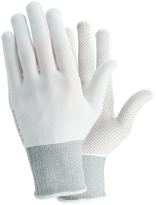 TIP Mănuși pentru lucrări de precizie, Mănuși din material textil CATEGORIE Cat. II MĂRIMI 6, 7, 8, 9, 10, 11 DESIGN DE ADERENȚĂ Puncte MATERIAL CĂPTUȘEALĂ 13 gg, Nailon, Fără cusături LUNGIME 220-270 CULOARE Alb PERECHI PER: PACHET/CUTIE 12/120