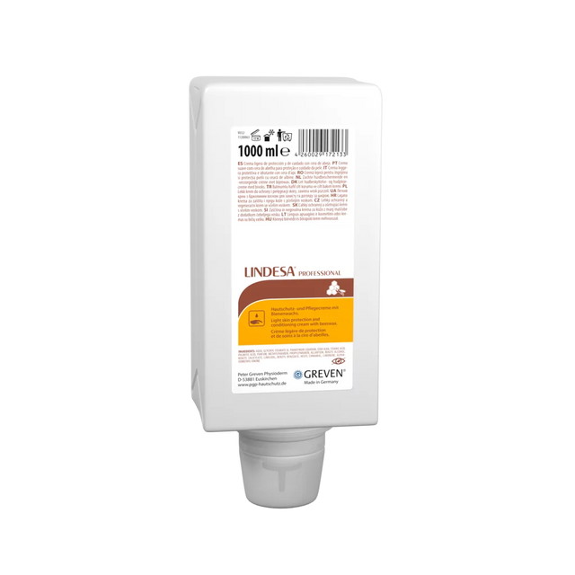 LINDESA® PROFESSIONAL respectă cerințele halal și kosher, iar gama include diverse ambalaje, de la tuburi mici (20 ml) până la flacoane mari și dozatoare. Produsul este fabricat de Peter Greven Physioderm GmbH în Germania și este utilizat frecvent în medii profesionale pentru protecția și îngrijirea pielii.