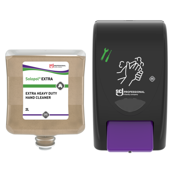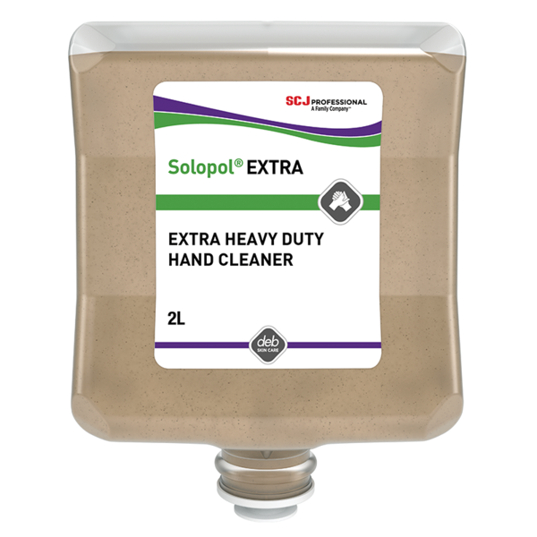 Solopol® EXTRA este un produs profesional de curățare a mâinilor destinat utilizării în medii industriale pentru eliminarea murdăriei extrem de persistente, inclusiv ulei, grăsimi, negru de fum și lubrifianți. Formula sa este puternic eficientă, dar fără solvenți, oferind performanțe comparabile cu produsele pe bază de solvenți pentru curățarea intensă. Curățarea este realizată printr-un sistem unic de surfactanți care crează o acțiune micelară ce pătrunde și solubilizează murdăria încăpățânată, reducând în același timp re-depunerea murdăriei după curățare. Produsul conține un nivel ridicat de agent de frecare natural Astopon®, obținut din praf de coajă de nuci, care se clătește ușor și previne blocarea canalizărilor. Solopol® EXTRA este certificat cu eticheta ecologică europeană (EU Ecolabel) pentru un impact redus asupra mediului pe tot parcursul ciclului său de viață. De asemenea, conține emolienți pentru a preveni uscarea pielii, este formulat cu un conservant blând care minimizează riscul iritațiilor și este lipsit de silicon, fiind compatibil cu procesele de producție a cauciucului fără a afecta vulcanizarea. Produsul are un pH apropiat de cel natural al pielii (4.0-6.5), contribuind la menținerea echilibrului bacterian al pielii.