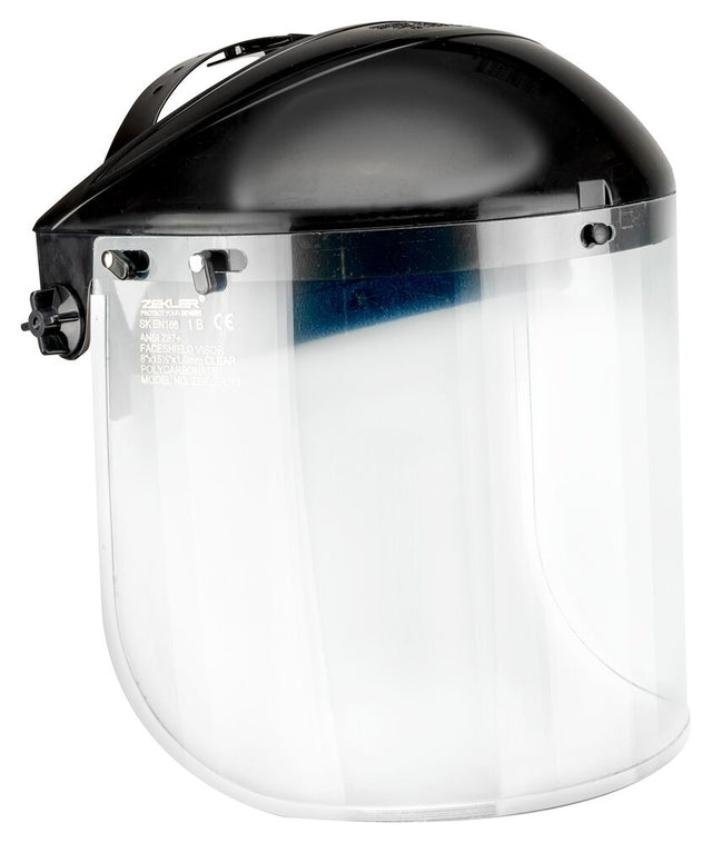 Viziera cu suport pentru cap Zekler 10 oferă protecție superioară și confort în utilizare. Fabricată din policarbonat de înaltă rezistență, viziera este tratată anti-ceață pentru o vizibilitate clară și continuă, chiar și în condiții dificile de muncă. Dispune de cea mai înaltă clasă optică și o rezistență foarte bună la impact. Suportul pentru cap beneficiază de o bandă de velur împotriva transpirației, care asigură confort maxim chiar și în timpul purtării îndelungate. Ajustarea se face ușor, cu ajutorul unui mecanism cu rotiță (ratchet), pentru fixare perfectă. Marginea vizierei este întărită cu metal ușor pentru o durabilitate sporită.