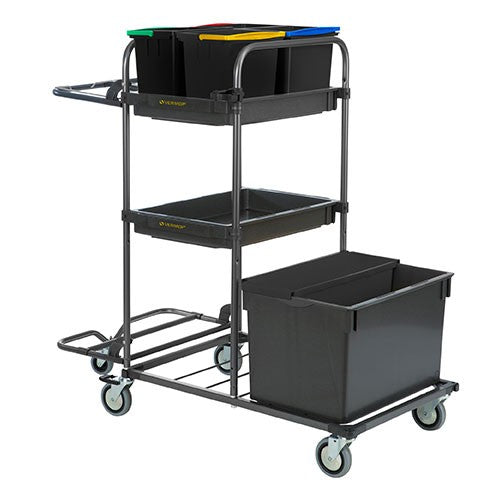 Cărucior mop Vermop Mistral DES, cuvă dezinfectare 35L, cutii și găleți multiple