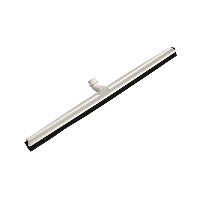 Acest ștergător de apă este ideal pentru spații mari închise, oferind mobilitate sporită datorită articulației pivotante. Are dimensiunile 700 x 53 x 95 mm, corpul este alb, realizat din polipropilenă cu fibră de sticlă (PP GF), rezistent la temperaturi între -20°C și 85°C. Sistemul de prindere utilizează filetul Haug, asigurând o montare ușoară și sigură a profilului de cauciuc schimbabil. Lama de cauciuc neagră, specială, are înălțimea de 25 mm și duritate medie, fiind conformă standardelor de igienă HACCP, ceea ce o face potrivită pentru utilizarea în domenii alimentare și medii sensibile. Acest ștergător combină durabilitatea, igiena și manevrabilitatea pentru curățarea eficientă a suprafețelor netede.